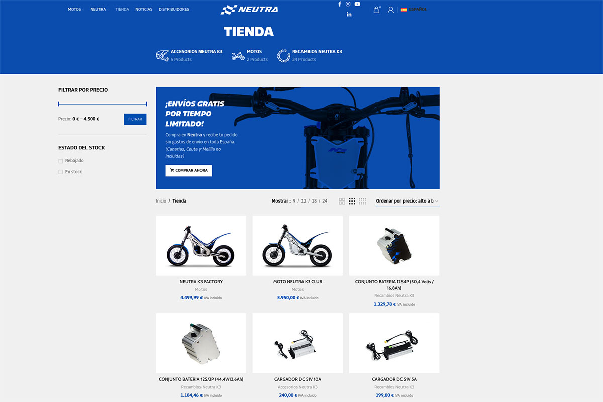 NEUTRA MOTOR LANZA SU TIENDA ONLINE OFICIAL